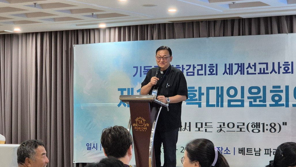 “모든 곳에서 모든 곳으로”(행 1:8)라는 주제로 열린 이번 회의에는 세계선교사회 임원단을 비롯해 각 권역 및 나라 대표, 연회 대표, 역대 회장단, 분과위원장, 초청 강사, 선교국 관계자 등 총 59명의 감리회 선교 지도자들이 한자리에 모여 세계 선교의 현황을 나누고 미래 전략을 논의했다.
